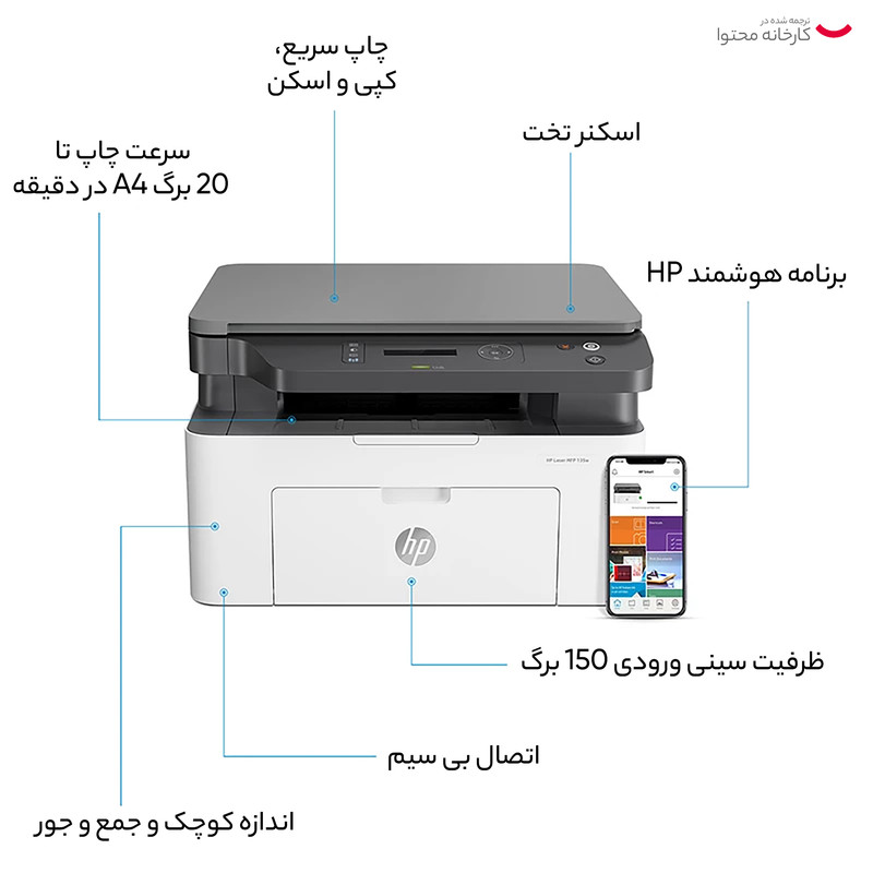 اگر قصد خرید پرینتر دارید؛ پرینتر لیزی یکی از بهترینهای موجود در بازار است. سرعت و دقت این نوع پرینتر بسیار بالاتر از سایر دستگاهها است ازاینرو از این مدل برای مصارف خانگی یا اداری استفاده میکنند. شرکت اچ پی یکی از برندهای پرقدرت در تولید لوازمهای الکترونیکی و دیجیتال است. اگر قصد خرید یک پرینتر بسیار پرکاربرد را دارید که سالیان سال برای شما کار کند؛ پرینتر چندکاره لیزری اچ پی مدل Laser MFP 135w بسیار مناسب شما است. این مدل قابلیت سهگانه پرینت، چاپ و اسکن را انجام میدهد و در حقیقت با خرید این دستگاه خود را بینیاز از سایر دستگاههای اضافی کردهاید. مدل Laser MFP 135w قادر به چاپ تکرنگ روی برگه A4 است و قابلیت چاپ 20 برگ در دقیقه را دارد. این پرینتر جهت کار با کامپیوتر تنها با سیستمعامل ویندوز 7 یا نسخههای جدیدتر سازگار است و با سیستمعاملهای غیر ویندوزی کار نمیکند. ویژگی اتصال بیسیم Wi-fi از امکانات کاربردی و ویژه این پرینتر چندکاره است. همچنین از طریق آن میتوانید پرینت با موبایل و تبلت را نیز انجام دهید. این پرینتر چندکاره اچ پی با حافظه 128 مگابایت، پردازنده 600 مگاهرتز و حداکثر توان چاپ ماهانه 10000 صفحه، یک دستگاه اقتصادی و کامل برای افرادی که نیازی به قابلیت فکس ندارند محسوب میشود. همچنین قابلیت کار با اپلیکیشنهای HP Smart App ، HP ePrint ،Apple AirPrint™ ،Mopria™-certified ،Wireless Direct Printing ،Mobile Apps، Google Cloud Print برای پرینت بیسیم و از راه دور را دارد. از طریق قابلیت وای فای دایرکت نیز چندین دستگاه قادر به اتصال و پرینت در کوتاهترین زمان ممکن خواهند بود.