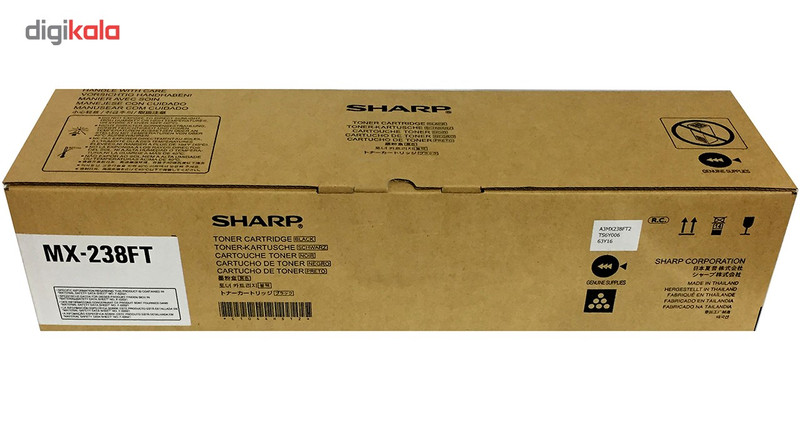 محصولی که در این قسمت مشاهده میکنید تونری است که شرکت شارپ با مدل MX-238FT طراحی و تولید کرده است. این تونر لیزری برای استفاده در دستگاههای AR-6020N/ AR-6023N/ 6020 تولید شده است و قادر است تا 10000 صفحه متن را با پوشش 10 درصدی چاپ کند و بدیهی است که در صورت افزایش تراکم چاپ تعداد صفحات و میزان قابلچاپ کاهش مییابد. شرایط نگهداری این محصول در دمای بین 20 تا 40 درجهی سانتیگراد اعلام شده است و در صورت نگهداری محصول خارج از این میزان محصول صدمه میبیند. شرکت تولیدکننده عمر محصول را برابر با 2 سال اعلام کرده است.